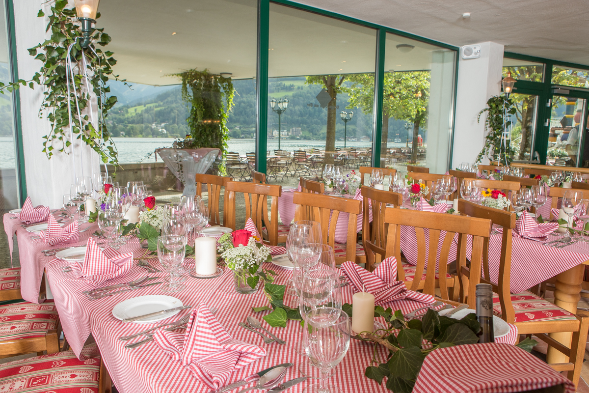 Unsere traditionelle Braustube bietet 75 Sitzplätze. Es kann zwischen verschiedenen Bestuhlungen gewählt werden – ob lange Tafeln oder elegante 8er Tische. Die Stube ist auch Ideal für Gruppen im Sommer z.B. nach einer Runde mit dem Schiff auf dem Zeller See. Wir stellen Ihnen gerne Ihr Gruppenmenü zusammen: hausgemachte österreichische Gerichte in einzigartiger, heimeliger Atmosphäre – und das direkt am See.